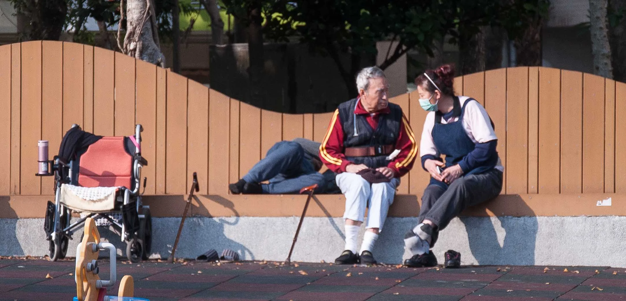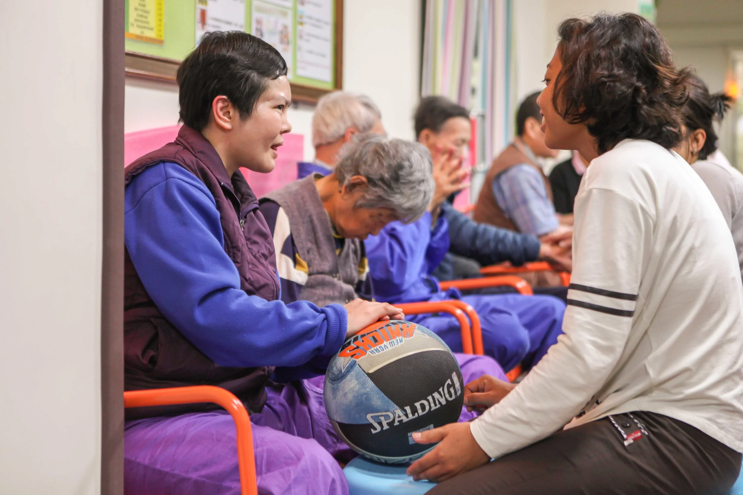 也因為居住空間都在一樓,直接面對著外面的公園。晴天的時候,學員可以在公園裡曬太陽、聊天、互動。