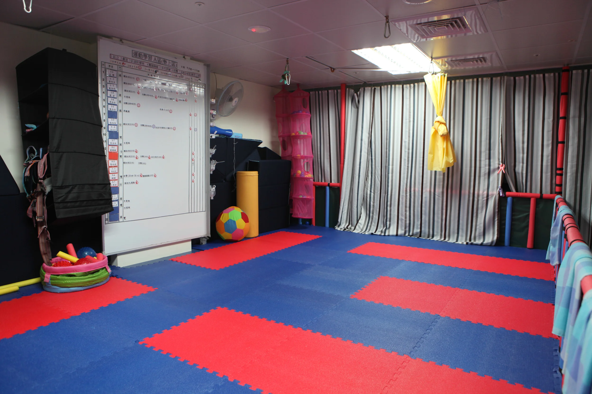整個機構的以「提供運動的空間」為設計主軸,我們擁有全台唯一的墊上訓練區、環狀行走訓練坡道、以及各式運動家具組成的訓練設施。