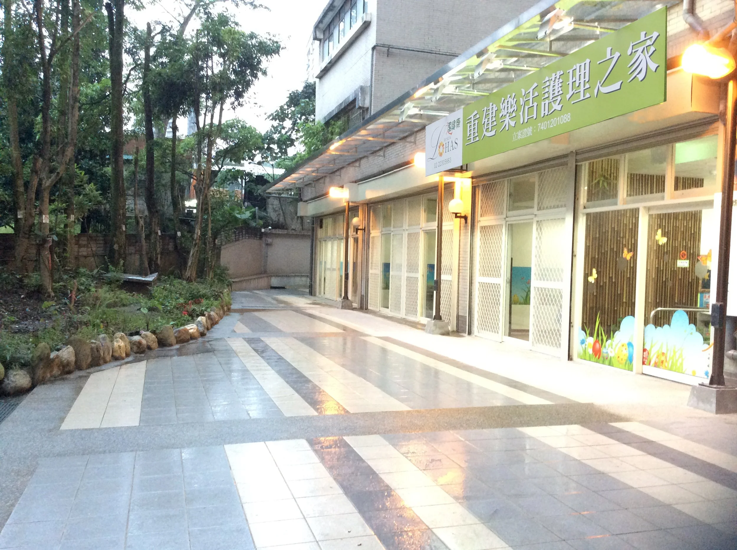 在設立重建樂活護理之家時,我們以公共安全為設立機構的第一考量,因此,重建樂活護理之家,不僅設在一樓,而且面對室外千坪公園。